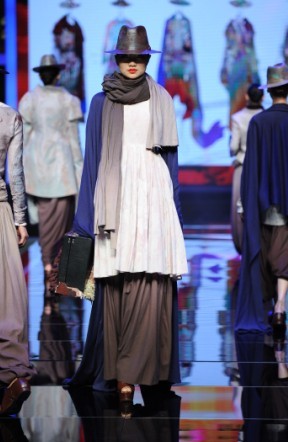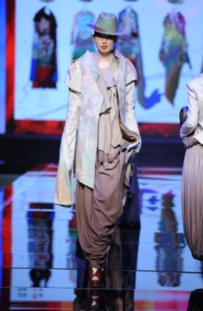 张业超的作品《丝路 梵音》让人印象深刻,模特在展示时,步伐刻意放慢,与其他选手作品的节奏截然不同。他表示,中国文化与西方文化差异很大,一般的走秀节奏比较明快时尚,但是用在他的这套作品中不太合适。