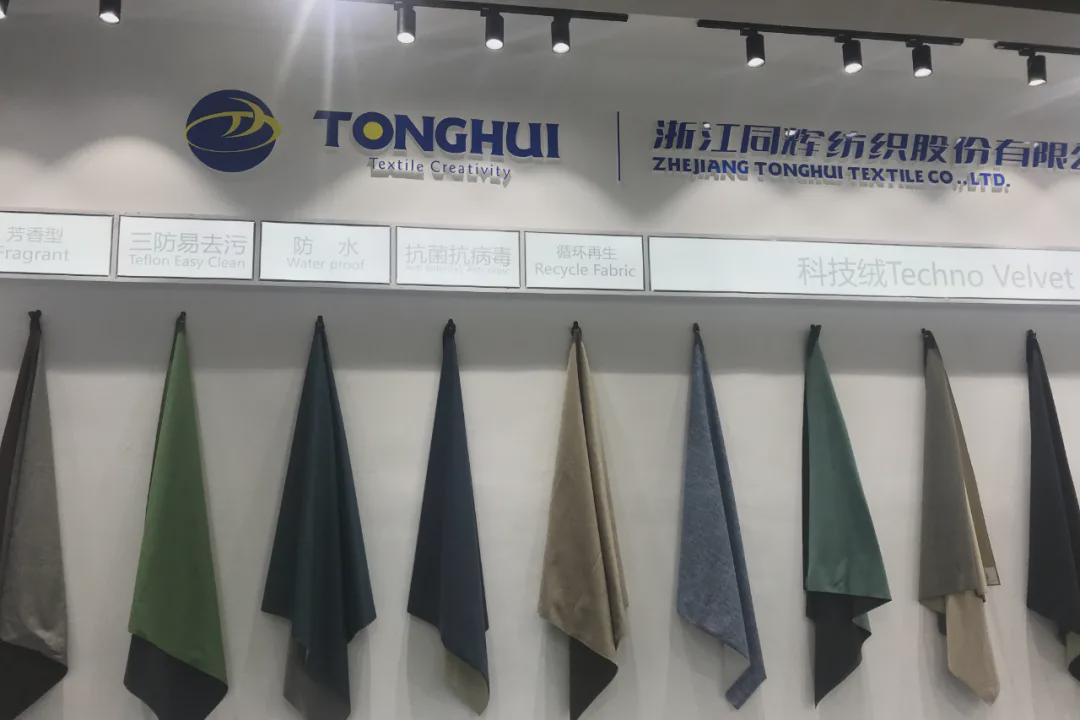 杭州柯力达家纺有限公司始创于1998年,是一家专业研发生产沙发布、户外面料、床上用品、抱枕、窗帘、纺织类宠物用品等一系列装饰家纺用品的公司。浙江同辉纺织股份有限公司此次展会带来了针对国内外市场需求的科技和功能系列产品,以及各种热销款产品,科技类主要是科技绒、科技皮等多款产品,功能类主要包括芳香型、三防易去污,防水,抗菌抗病毒,循环再生等功能产品。