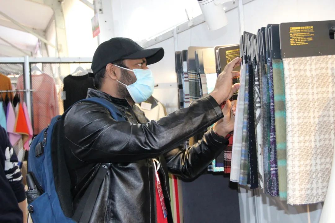浙江沃棆特实业集团有限公司展位的营销人员表示,公司为中高级时装品牌提供可持续环保高档纱线,拥有国内最多意大利花式纱生产设备,以及粗纺、绒精纺、半精纺等全品类生产线。以前以外贸为主,但几年前已经向国内市场转移,疫情并没有影响到订单量。本次参加交易会,也是想扩大国内尤其是江浙地区的市场。