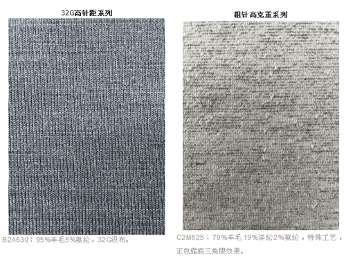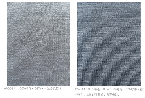 产品定位美丽诺羊毛及与其他天然纤维混纺,产品开发秉持可持续环保理念,成功开发回毛recycled wool与天丝tencel混纺面料。