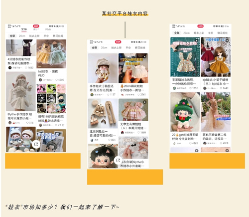 与娃娃相匹配的娃衣利润空间更高,且预测市场规模更大。娃友们养一只娃娃买几套甚至几十、上百套衣服并不稀奇。一套娃衣的材料、用工成本或许仅一二十元,但价格却可能超过裸娃,利润率也远远高于传统服装行业。且娃衣更新速度比棉花娃娃更快,不断出现新的造型图,刺激着粉丝玩家持续收集新的娃衣。很多“养娃大户”常常拥有一柜子或一面墙的娃娃。除了衣服还要搭配不同的配饰。这也足以表明“养娃人”的氪金实力。