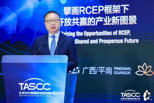 国际纺织制造商联合会主席、中国纺织工业联合会会长孙瑞哲在会上作《擘画RCEP框架下开放共赢的产业新图景》主旨演讲。他指出,维护全球产业链供应链韧性和稳定、寻找供应链发展的动力和空间,符合世界人民、全球产业的共同利益。纺织行业的发展对于中国式现代化的稳步推进具有重要意义,是民生的压舱石,是区域经济发展的先导产业,是不确定国际环境中实现国际合作确定性的重要力量。
