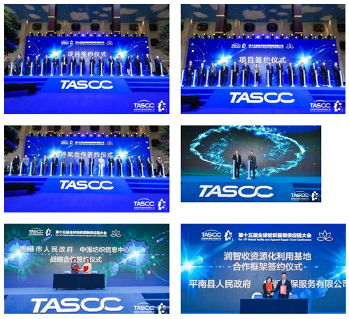 ![]() 围绕振兴地方经济、促进行业发展、深化产业融合、表彰行业荣誉,会上举行了26个重大项目合作(总投资额166亿元)签约仪式、“中国(贵港)纺织服装时尚新区意向合作框架协议签约仪式”、“共建中国纺织信息中心纺织服装供应链研究院战略合作签约仪式”、“润智收资源化利用基地项目合作框架协议签约仪式”、“推进贵港市纺织服装产业高质量发展战略合作协议签约仪式”、“中纺学标委会纺织服装供应链管理专家组专家证书颁发仪式”、“第十五届全球纺织服装供应链大会贡献奖颁奖仪式”等多项仪式活动。