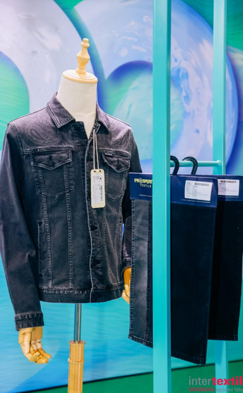在2023中国纺联秋季联展活动中,CHIC-可持续创新专区通过CNTAC-LCA产品碳足迹展览对LCA测算典型产品进行展示。展示了森马针织裤、安莉芳文胸与低碳糖果裤、歌力思连衣裙、劳芮连衣裙、七匹狼男装牛仔茄克等典型案例。以一件男装夹克为例,其生命周期的数据核算边界从摇篮到大门,数据涵盖了莱赛尔纤维、棉纤维、散纤维染色、纱线生产、面料制造、服装缝制等各个生产环节。