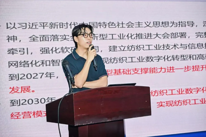 ![]() 工业和信息化部赛迪研究院、中国软件评测中心制造业数字化转型事业部高级研究员尹昊天解读《纺织工业数字化转型实施方案》时表示,《方案》旨在推动纺织工业 “高端化、智能化、绿色化” 发展。2027 年转型支撑能力提升、新模式涌现;2030 年信息技术赋能成效显著,推动企业变革。具体目标包括规模以上纺织企业数字化率超 70%,打造 150 个以上转型场景、60 个以上标杆等。方案部署 4 大行动及 18 项措施,并有构建创新平台、打造数据链等支持举措,还将成立研究中心、举办创新大赛等,为企业转型提供参考。