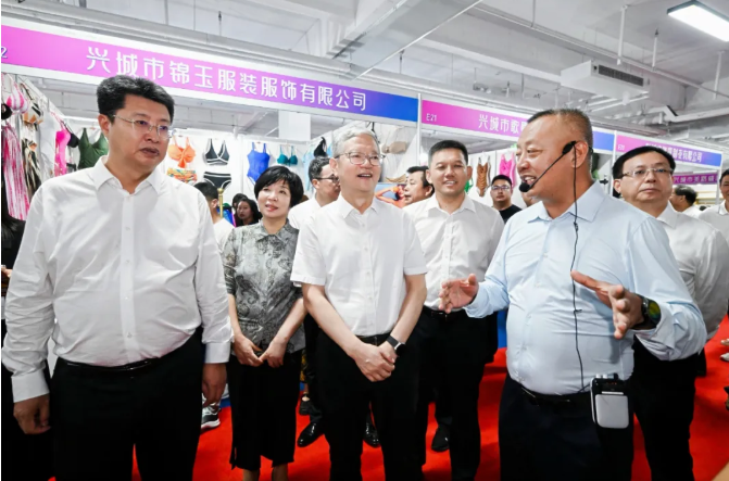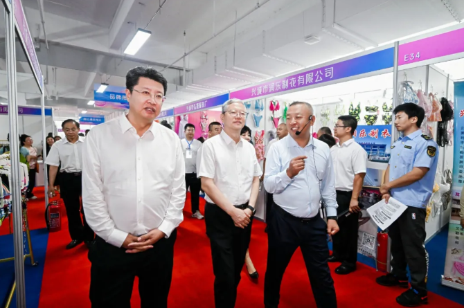 ![]() ![]() ![]() 开展首日,中国纺织工业联合会秘书长夏令敏,中国针织工业协会会长林云峰,辽宁省纺织服装协会会长王翀等行业协会领导,以及葫芦岛市委副书记、市长何志勇,兴城市委书记陈玮等地方政府领导一行参观了英华、斯达威、奢航、伊美、歌曼、泽之尚、美奇、飞图画笔等企业展位,他们见证了兴城泳装以“小泳装”撬动“大市场”的企业实力与产业生态。