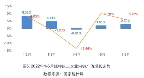 据国家统计局数据测算,今年1-6月全国规模以上家纺企业内销产值同比增长2.39%。由于今年3、4月份国内疫情封控导致企业生产经营停摆,行业内销同比大幅下降。5月份以后随着国内疫情逐步得到有效控制,企业生产经营逐渐恢复,但总体恢复进程趋缓。据中纺联“二季度企业经营管理问卷调查”结果测算,家纺企业二季度新订单指数为39.35,比一季度略增0.5个点。