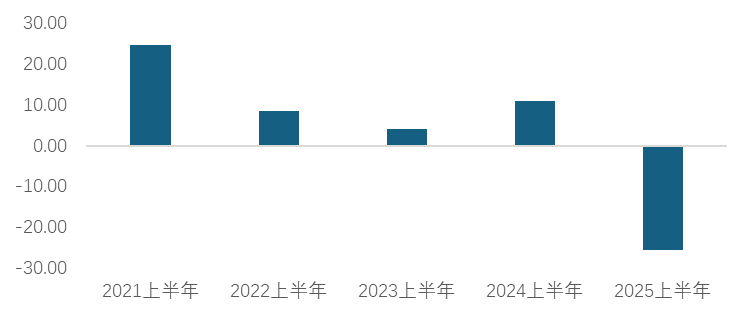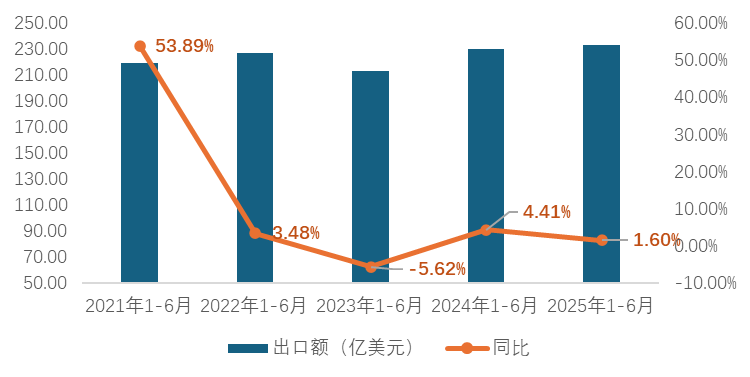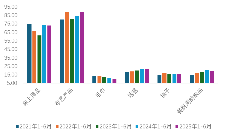 图6.我国家用纺织品2025年上半年与近五年同期出口情况