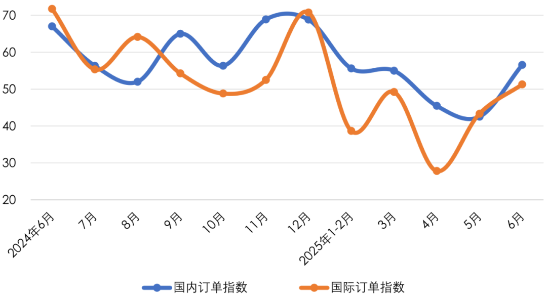 图2 2024年6月-2025年6月产业用纺织品行业国内外市场需求情况
