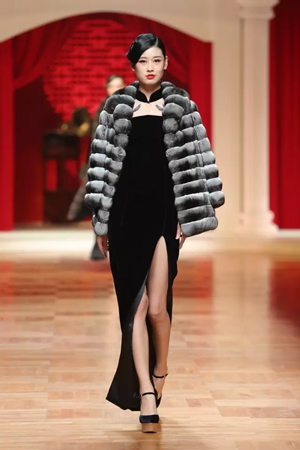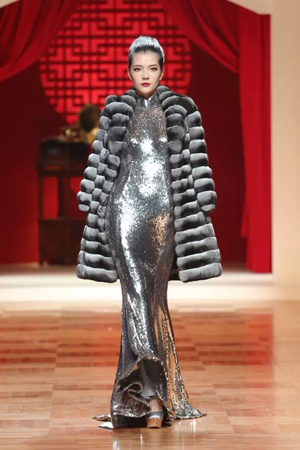 北洋军阀时期的华丽军装形制简便,精致洋装充满活力,清末贵族裘皮服饰再度重现传统风姿,一场服饰变革席卷而来。细节方面丝毫不马虎,中国传统苏绣、勾边刺绣、米珠刺绣等技艺运用于丝绒、真丝重缎、毛呢等面料之上。 第二幕,五四运动,民族觉醒。