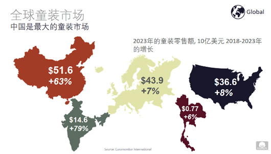 根据欧睿的调查报告,预计从2018年-2023年,中国童装市场零售额将增至516亿美元,比2018年上升63%,是全球最大的童装市场。在中国,随着中产阶层人口的增加,不断增长的儿童人均开支,和时尚关注度提高,亚洲童装市场不断增长。另一方面,由于可支配收入停滞,出生率降低等原因,西方童装市场增长缓慢。中国消费者购买童装时,首要考虑因素是柔软/舒适,其次是容易穿脱/孩子喜欢,其他因素例如耐穿性价比高也很重要。中国消费者青睐购买全棉或含棉服装。他们认为棉舒适,柔软,低过敏性,透气和高品质。此外,在购买童装时,孩子对父母也有一定的影响。40%的中国消费者允许孩子给出服装购买意见。66%的中国父母基本或完全和孩子一起购买服装。