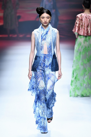 10月31日,设计师谢家齐以《丝路·重生》为主题,在2019春夏中国国际时装周发布90套精美服饰,再现丝绸之路的庞博与无限文化艺术的时空之美。