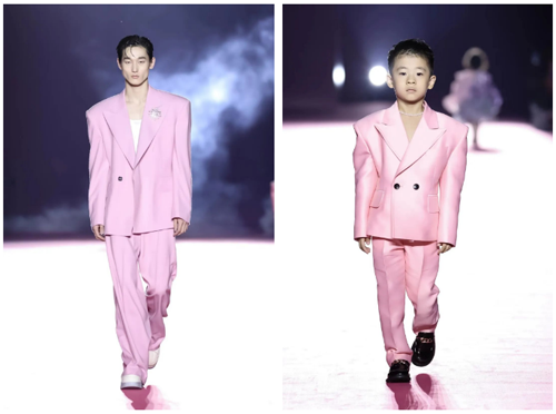 ![]() ![]() 粉色时空里烟雾突袭,童装率先从光中走出,倒流或反转,Beautyberrykids的亮点在于立体造型完全溶于艺术化的引导中,夸张造就可爱,精致衬托跳跃,让童年获得纯真的梦境,在虚拟感中的审美浸润让童装引发建设性的思索。穿粉色西装的男孩儿“穿越”为男人的交错,开启主线系列的发布。