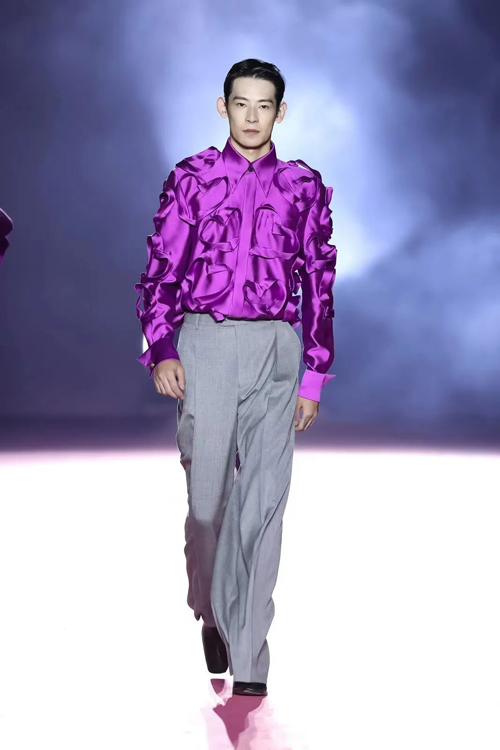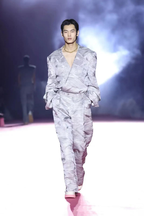 ![]() ![]() 在巨型全粉的露天秀场,没有人可以置身事外,这是在极短的时间里,时装与艺术最高频的对话,也是一切细节浮动的精彩时刻。音乐的震动隐匿于服装的流动中,模特动态的轨迹被强行拽入时代的洪流,静止般“刺入”视线。本季,男性线条流畅与女性线条的刚硬形成对比,在冲突中用色彩抵达和谐,复古与未来交织,情绪与行为互补,从容踱步,设计理念缓缓流淌,即追溯过往,也启幕新的纪元。