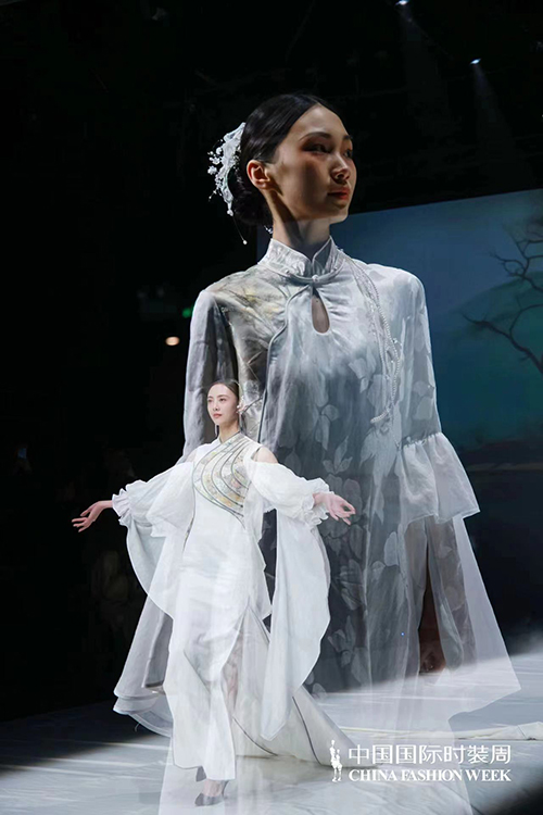 本季发布根据新时代生活方式需求,打造国风礼服与国风成衣不同穿着体验。面料采用全真丝织锦、真丝绡、醋酸缎、水溶刺绣蕾丝、提花丝麻等面料,结合手工缂丝、刺绣、盘扣、织锦、印金、植物染等各项非遗工艺。结合现代艺术与零碳环保理念,融合中国传统文化印记与风格进行设计再创,重新定义新国风服饰的潮流风向。