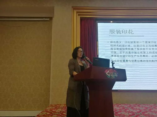 黄国光为在座嘉宾分享了《中国服装印花发展动向》,“如今,服装印花已经被赋予了越来越多文化内涵,而花型的艺术性、时尚性均依托于印花加工的工艺、技术、设备、材料、管理,印花行业的优势将愈发凸显。”黄国光从印花的智能化发展、实用性发展、生产智能化ERP管理、文化T恤个性化定制、公共服务平台等发展方向对印花产业发展进行了展望。