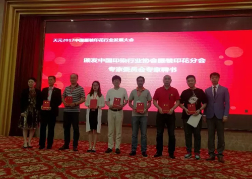 时尚如何引领印花未来?听听2017中国服装印花行业发展大会怎么说! (附首届中国服装印花创意精品大赛获奖名单) 本刊记者-董笑妍 5月23-24日,由中国印染行业协会主办,中国印染行业协会服装印花分会承办,如皋市天元印花设备有限公司、香港浩瀚资讯传媒集团有限公司协办的天元2017中国服装印花行业发展大会在广东省佛山市举办。