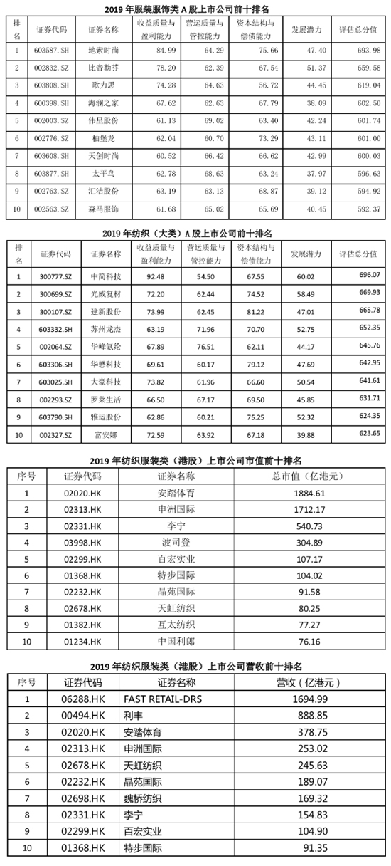 本刊记者-郝杰 “在危机中育新机,于变局中开新局,需要我们‘自力更生’,也需要我们‘善假于物’”,中国纺织工业联合会会长孙瑞哲在7月6日举行的中国纺织服装行业上市公司董秘联盟2020年会上做主旨演讲时如是说。他进一步解释,“善假于物”提醒我们,成功的企业与一般的企业没什么大的区别,之所以成功的原因之一是因为能善于利用外物,比如“资本市场”。 2020年以来新冠肺炎疫情肆虐,全球经济需求和供给受到了双重冲击,引发了资本市场巨大波动,世界政治及经贸格局变化的不确定性因素在增加。作为我国纺织工业创新优势企业的集中代表和产业发展排头兵,纺织服装类上市公司如何规避风险应对严峻形势,根据市场的变化和行业发展要求,做好有序复工增产,提升上市公司管理和运营水平,扎实拓展市场,是广大纺织服装上市公司亟待研究商讨的共性问题。 7月6日是个好日子,股市大涨,中国纺织服装行业上市公司董秘联盟2020年会在北京举行,考虑到北京市严控疫情要求,本次会议采用北京主会场与线上视频方式并联举行。会议主要围绕纺织服装行业上市公司进一步团结协同、赋能增效、创新奋进等内容进行交流和研讨。中国纺织工业联合会会长孙瑞哲,中国纺联副秘书长、中国纺织工业企业管理协会常务副会长杨峻,中国纺联副秘书长、行业发展部主任李进才,中国纺织规划研究会执行会长、中国纺织服装行业上市公司董秘联盟主席冯德虎,中纺资产管理有限公司副总经理房娜,中国纺联品牌办副主任屈飞,中国化纤工业协会、中国产业用纺织品行业协会、中国纺织建设规划院相关领导,以及60多家各类纺织服装上市企业、行业重点培育拟上市企业的代表出席。 中国纺织规划研究会常务副会长俞亦政主持会议。 强化资本的力量 推动践行产业新定位 中国纺织工业联合会会长孙瑞哲在会上作《我国纺织工业现状与产融合作发展前景》的主旨报告,他在介绍了我国纺织工业上半年运行情况后说,随着国家对疫情的有效防控,行业生产经营活动已经基本恢复,内需市场也逐步回暖。但全球疫情态势依然严峻,行业的平稳运行面临诸多挑战,深化产融合作是实现可持续发展的现实需要。同时,世界格局正发生深刻调整,对行业造成了很大影响,深化产融合作是适应变局的客观要求。目前,随着产业与金融协调发展的生态加快形成,深化产融合作也具有现实基础和发展潜力。 实现行业高质量发展,孙瑞哲强调要强化“资本的力量”,推动行业践行“科技、时尚、绿色”的产业定位。孙瑞哲提出了产融合作的五个途径:一是要强化对抵御疫情冲击能力较弱的中小微企业、产品深度融入国际供应链的外贸型企业、身处重点疫区和贫困地区的企业、对供应链有带动效应但短期资金压力较大的龙头企业等四类企业的融资能力建设,防止出现大面积企业破产,使这些企业能够更好地生存下去,保证产业链的完整性与安全性。二是以产融合作推动行业数字化转型,探索运用新型“举国体制”,以金融工具有效联动各方力量,支撑行业新型基础设施建设。行业企业更要抓住机遇,加快自身与新技术、新产业、新业态、新模式的深度融合。三是企业要善于借助金融资本力量,协同各方资源,推动技术、人才等创新资源向行业的加速集聚,以产融合作助推行业基础创新。四是资本的赋能,使得企业可以在更短时间实现扩张与成长,同时,借助资本力量企业可以实现跨领域、跨行业的快速发展,以产融合作培养产业主体。五是借助绿色金融工具,企业可以更好更快的实现产能结构调整、淘汰落后产能,建设绿色供应链,以产融合作引导行业可持续发展。 上市公司健康度指数同比提高 但仍处亚健康状态 据不完全统计,截止到2019年末,我国沪深两市以纺织服装为主营的(A股)上市公司约176家。沪深两市纺织上市公司市值规模约13975.61亿元,较上年同期增加29.48%。与34734家纺织工业规上企业相比,沪深两市纺织服装类上市公司数量占比仅为0.51%,资产规模占比却高达47.16%的。2019年全年营收总额约占全行业规模以上企业的25.85%,利润占比为36.36%。纺织上市公司在技术、资本、品牌、市场、管理等方面优势明显,凸显出在纺织工业经济发展中的中坚作用与重要贡献。 中国纺织服装行业上市公司董秘联盟主席冯德虎在会上介绍了2019年度沪深两市纺织服装类上市企业运营发展综合测评评估结果。本年度Asys.16评估测评总分505.06,比上年度提高了2.72%。其中中简科技、地素时尚、光威复材位列前三名。2019年度沪深两市纺织上市公司健康度指数(HIS分值)74.22,比上年提高了2.42分,但仍处亚健康状态(HIS分值在60-75分)。表明沪深两市纺织上市公司还可能存在一定的潜在隐患风险或不稳定因素。 对于今年一季度纺织服装上市公司运行情况,冯德虎分析说,2020年一季度,受新冠病毒突发疫情冲击,纺织服装上市企业承受了全球市场低迷和经济下行所带来的风险和压力,经济运行、生产销售受到较大影响。相关统计数据显示,纺织工业11个子行业除化纤等个别行业外,一季度各项主要经济运行指标较上年同期均有不同程度的下降,盈利质效水平整体下滑,发展增速由正为负呈减速放缓态势。同时,从一季报各月度经济运行数据变化和专项调研情况看,纺织服装上市公司面对疫情冲击表现出了较强的信心和韧