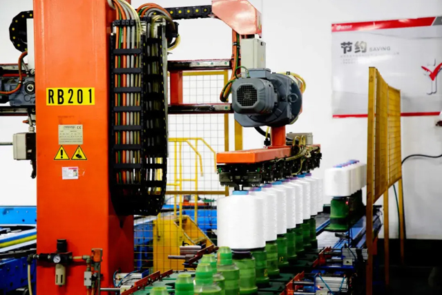 全球首条万吨级熔体直纺中试基地 当时,国内同行生产的超细纤维规格以0.5dpf(1万米重量0.5克)为主,而一家日本企业率先将超细纤维单丝细度做到了0.3dpf,并自信地宣称:这是世界上工业化纺丝的极限。“要做就要比别人做得更好,走差异化发展之路。”涉足化纤行业不久的盛虹集团毅然出资7亿元,在欧洲成立研发中心,并联合清华大学、东华大学专家攻关。 化纤厂区自动化生产车间,机械臂在搬运丝饼 “当时我们把印染业务赚的钱预研化纤新产品,很多人不理解。”缪汉根笑着说。在他的激励下,企业研发人员顶住压力潜心攻关。历时两年多、经过无数次失败后,盛虹集团终于成功攻克0.15dpf的“世界极限”,用这种超细丝绕地球一圈共4万公里只要一斤二两。与此同时,研发人员在设备、工艺上同步研发,0.15dpf超细纤维单丝很快实现量产,并迅速进入了国内外市场。如今,盛虹的超细纤维年产量,已超过欧美日韩等国家和地区的总和,位居全球第一。