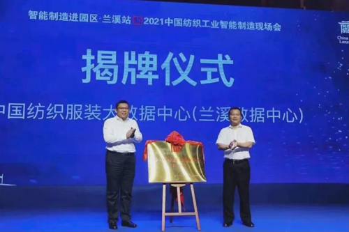 会上,还进行了棉织智能制造转型促进中心和中国纺织服装大数据中心(兰溪数据中心)揭牌仪式。