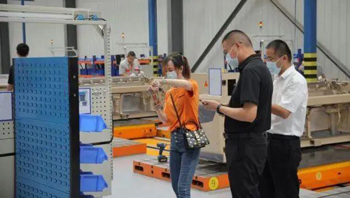 在总装车间,安装了全球首个织机脉动式装配线体,工序由标准的SOP以及70项专检记录,每台设备试机60分钟且专检项25个,特殊物料能够做到可追溯,单班产量可达到30台。