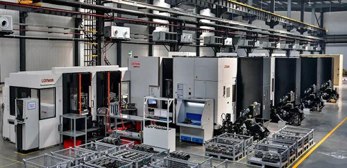 在加工车间,有9条柔性的日本加工线,为日本牧野、马扎克原装进口设备,全程加工过程均为自动化生产,单班只需5人,且只需负责上下料。核心零部件100%自制,加工精度在±0.002mm以内。配有高精度三坐标检测,规范的抽检样本。选用汽车配件的流水线进行铸造,工装家具为日本生产,刀具为瑞典山特,有效保证了精度和效率,实现了毛坯品质升级。