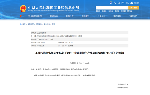 | “十四五”期间在全国认定200个左右集群!工信部发布《促进中小企业特色产业集群发展暂行办法》 |