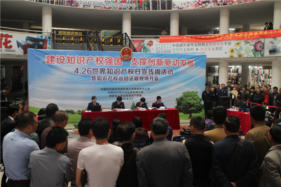 2015年4月23日,由中国轻纺城市场监督管理分局、中国轻纺城花样版权登记管理保护办公室组织的“4.26 世界知识产权日宣传周活动”在柯桥中国轻纺城北市场一楼圆大厅开展,本次活动主题为“建设知识产权强国支撑创新驱动发展”。活动受到了各方领导、市场经营户及群众的广泛关注,柯桥区委常委、副区长金晓明到场观看,并与工作人员亲切交谈。 本次活动内容全面、方式创新,法院知识产权庭巡回法庭现场开庭成为了活动的一大创新与亮点。柯桥区的知识产权纠纷主要为花样著作权侵权纠纷,活动也是选取了一则著作权侵权纠纷案例进行了真实的现场审判,希望对社会公众和市场经营户起到良好的法治宣传教育作用。