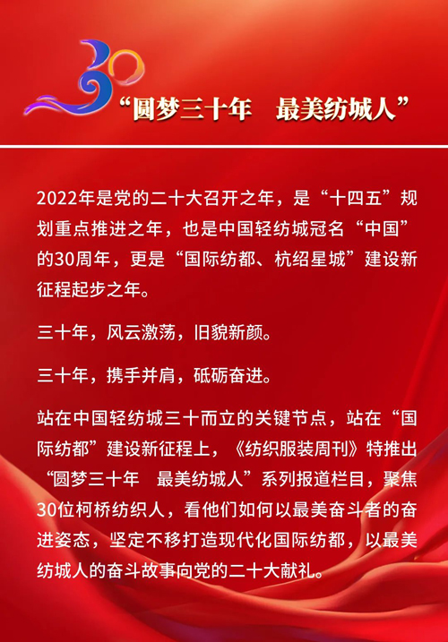 | 圆梦三十年 最美纺城人 | 从产品到管理的用心打磨,彰显90后纺织人的青春底色!访绍兴市柯桥区米尚纺织品有限公司总经理陈晓婷 |