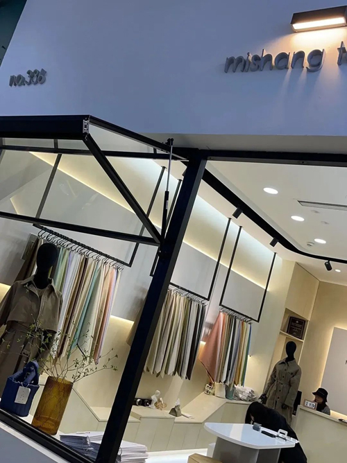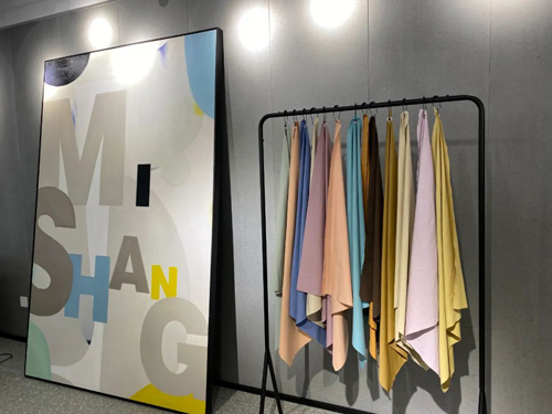 ![]() 基于面料的功能性和呈现效果,米尚会设计开发不同风格的样衣,如偏休闲类和时尚类以及通勤装,带给客户全新体验。陈晓婷介绍,米尚面料呈现以成衣为主,每年公司会定期把研发的成衣放到展示会上进行走秀。样衣会基于生产的面料进行研发。