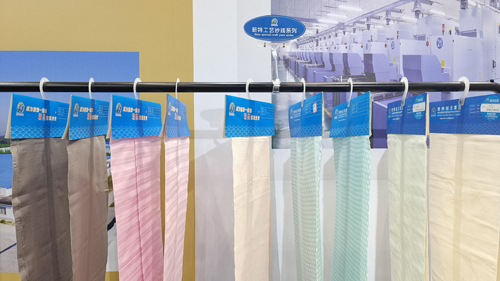 ![]() 近年来,终端消费者对可持续生活方式的向往,倒逼行业从纺织源头重新思考。为呼应市场需求,本届展会上,德州恒丰集团集中展出了抗菌抑菌、亲肤护肤等大批功能新品,带来了植物染纤维纱线系列、蛋白质和氨基酸的纤维纱线和面料系列、抑菌茯苓系列产品、抗菌珍珠仿羊绒面料等。