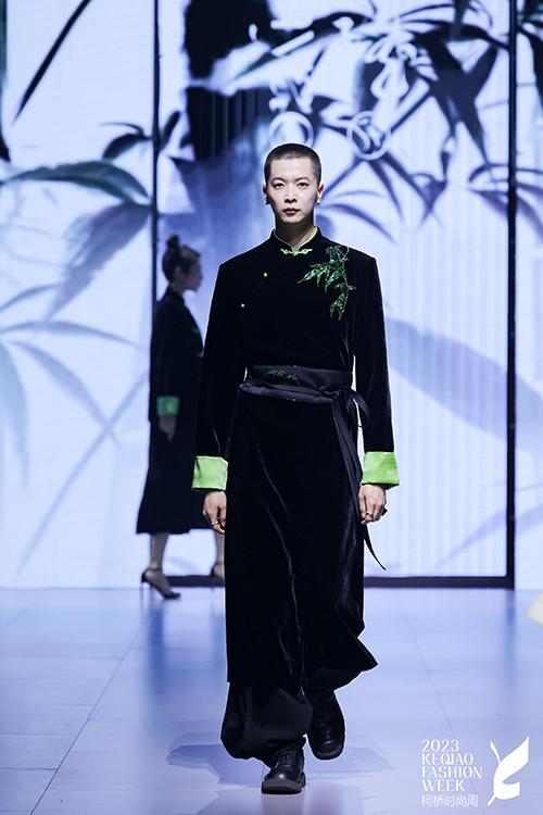 本次发布会主题"绿卿",灵感来源于东方意境与美学精神的代表之一竹子。古人常以竹的内涵赞美人的品格,本次设计的每一套服装都完美诠释了中国文化的神韵,把中国传统手工艺与现代服装结合,将竹子所代表的高尚人文情怀,融入到设计中,探索出新中式风格的更多可能性。