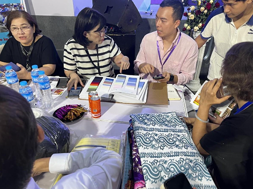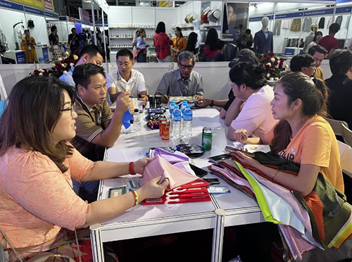 浙江乾道纺织品有限公司是第一次参加缅甸展会,主营针织类面料。在缅甸以前一直有合作单位,借着本次展会拜访了缅甸本地合作单位,并与他一同参加了展会。展会期间,2家缅甸本地服装加工企业现场下单20多万美金的货品。企业负责人王总表示,现场还有20多家意向客户正在洽谈,本次参展预计成交金额会超过80万美金。王总对本次缅甸参展之行非常满意,展会结算回国后将要尽快生产货物。