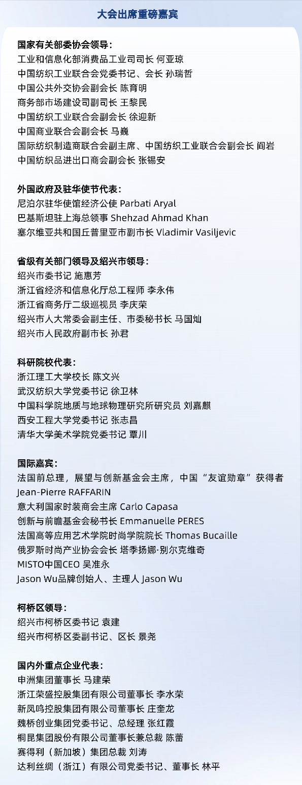 ![]() 潮起东方,竞合未来。当全球纺织工业站在历史与未来的交汇点,一场由科技、文化与绿色三维重构的价值革命正以前所未有的深度与广度席卷世界。站在全球纺织价值链从“成本驱动”迈向“价值引领”的关键节点,如何从国际竞合中重塑产业竞合新格局?