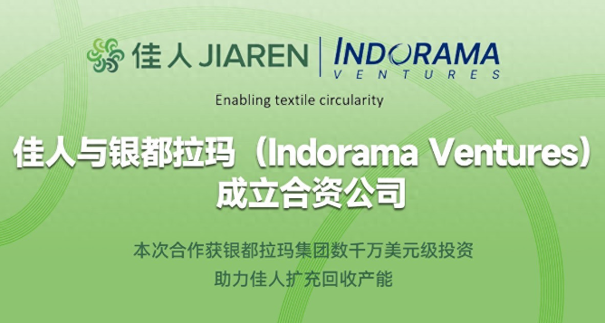 ![]() 曼谷(泰国)/浙江(中国)——2025年11月11日——全球领先的再生聚酯纤维、纱线及技术纺织品供应商银都拉玛集团(Indorama Ventures)纤维业务部,与化学法聚酯回收技术领军企业佳人(Jiaren)正式成立合资公司,携手加速全球纺织行业的循环经济转型。