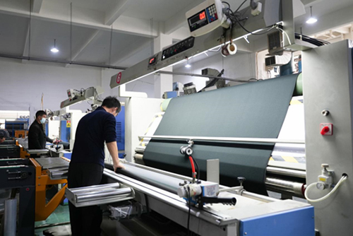 ![]() 他先后引进了自动包装机、数字化复合设备,并使用 ERP系统,实现了从接单、排产到仓储的全流程数据打通。在此基础上,鲁正伟进一步优化生产布局,确立“前厂出量、后厂定制”的协同模式,前厂八条标准化生产线高效运转,日产能可达 20 万―30 万米 ;后厂则依托灵活车间,专注高附加值定制订单。整个生产体系依托五六千平方米的厂房与两三千平方米的仓库,形成了规模与柔性兼备的制造能力。