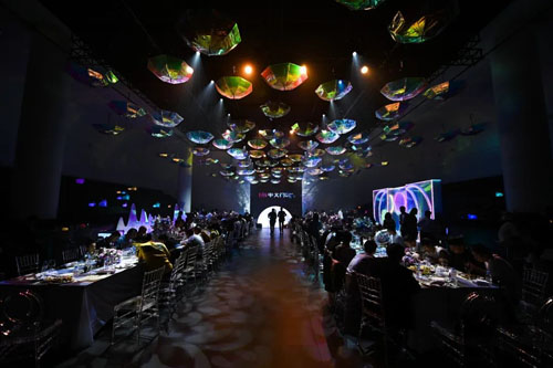 ![]() ![]() ![]() ![]() ![]() 晚宴现场以错落有致的山峦装置,形态各异的兔子灯,星光闪耀的霓虹伞为灵感,充满了优雅、浪漫、灵动的艺术氛围。品牌主理人、服装设计师、时尚达人、网红主播等嘉宾盛装出席,衣香鬓影与月光争辉,对美和时尚的热爱溢于言表。
