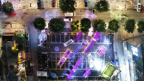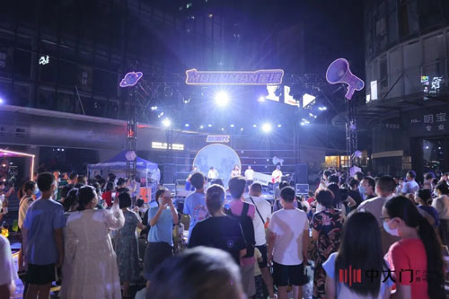 ![]() ![]() 现场乐队DJ表演赶走盛夏闷热,树影灯饰在时尚大道两侧相映成趣,在巨型月球和时空隧道装置拍照打卡的人们不断涌入......