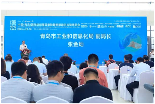 ![]() 青岛市工业和信息化局副局长张金灿在致辞中表示,中国(青岛)国际纺织服装制鞋智能制造供应链博览会是全省第一例荣获UFI认证的展会,作为青岛市纺织服装产业“优供给,促升级”专项行动的重要活动之一。