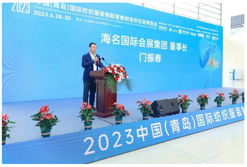 ![]() 海名国际会展集团董事长 门振春在致辞中表示,中国(青岛)国际纺织服装制鞋智能制造供应链博览会作为专注纺织服装制鞋产业上下游服务的专业展会在各级领导的支持下、在社会各界的关注下已经成功举办23届,今年也是首次在红岛展馆举办,经过疫情三年洗礼,博览会全面升级为智能智造供应链主题,既是顺应时代也是超前时代。