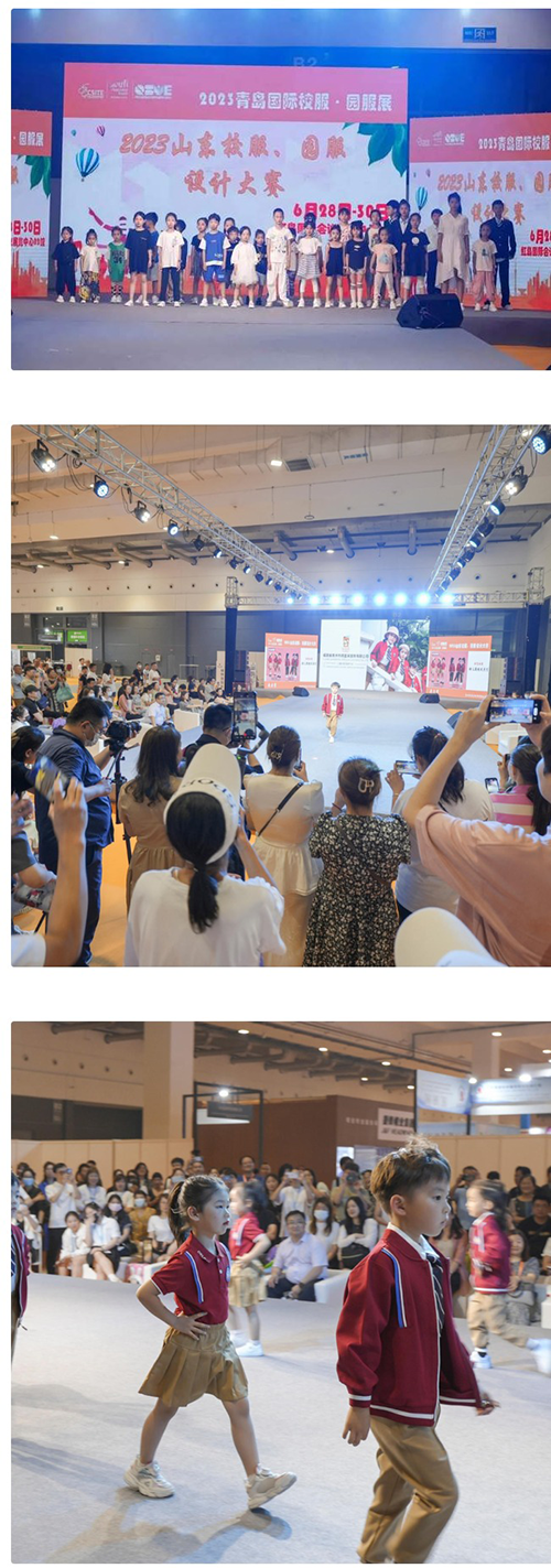 2023中国(青岛)国际校服园服展联合逸轩、红动、三和纺织、金利鸟、国人、卡曼、立泰等品牌厂家携最新设计作品展示。同期举办校服园服品牌时尚秀场,多家设计作品联袂协作,上百款校服园服设计作品展示秀。