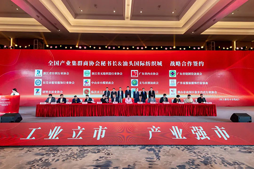 产业集群作为纺织工业中最鲜明的结构特征和最重要的组织形态,集群经济占据了纺织行业的半壁江山。汕头国际纺织城与中国针织工业协会、中国纺织工业联合会流通分会、中国毛纺织行业协会签订战略合作。