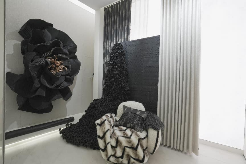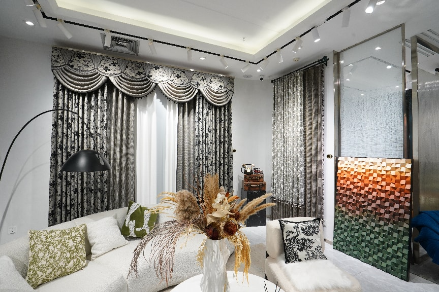 入驻海宁中国家纺城已有十多年、2019年正式将定位转向中高端、差异化市场的奢缇雅品牌窗帘,作为许村本土企业,见证了海宁家博会与许村家纺知名度、影响力逐年提升的盛况,骄傲之余,更多的是不敢松懈,这次不仅重新装修了展厅,也带来了创意升级的最新系列产品。“我们的强项就是在于设计,只做自己原创的东西,且善于将服装的面料及工艺用在家纺上,为大家带来更精益求精的产品。现在装修风格越来越偏向于做减法,摒弃繁复设计,这次展会,我们会通过棉麻、羊毛材质提升,文化审美提升的产品,来体现不同质化的格调感。”奢缇雅品牌窗帘主理人金新锋在采访中告诉我们。