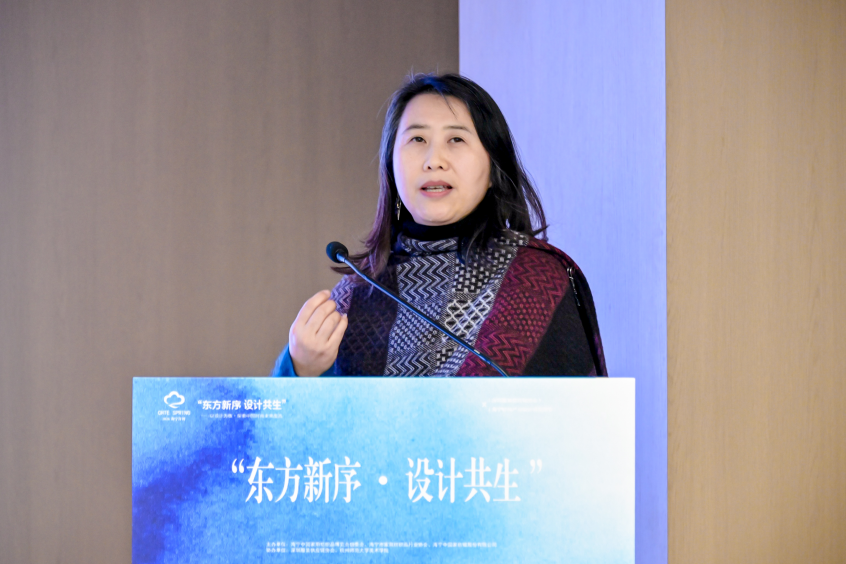 ![]() 十年沉淀,根基已成。杭州师范大学美术学院教授孙尔介绍了杭师大美术学院高端设计师孵化中心的发展历程和核心成果,系统阐述了该中心依托当地纺织产业基础所实现的社会、经济与育人三大价值协同,并规划了未来深化产教融合、推动原创设计赋能产业升级的发展路径。依托许村强大的纺织品面料产业环境,杭师大美术学院高端设计师孵化中心提出“从源头纱线—设计—面料—成品”的全链条“全面设计”理念,该思路契合国家重视原创设计、文化赋能与产业升级的政策导向,将设计、艺术及传统文化转化为现实生产力。