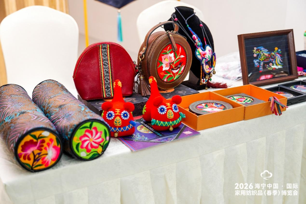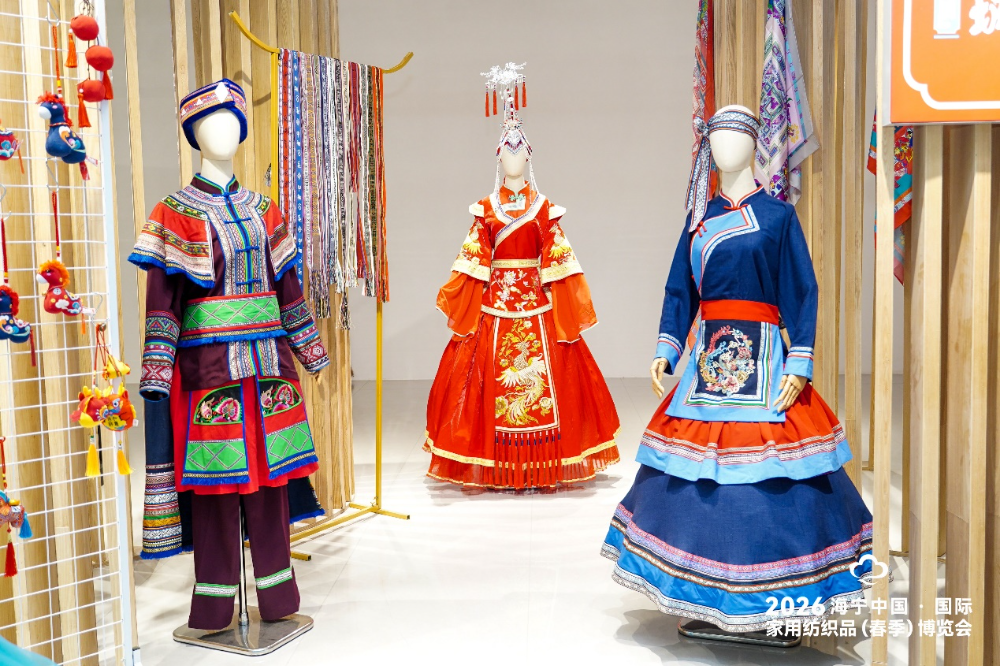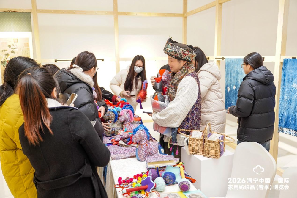 ![]() 3月4-6日,2026海宁中国・国际家用纺织品(春季)博览会如期举行。作为本届展会重要展区之一,位于2号馆二楼的 “非遗东方 锦韵潮城” 纺织非遗创意时尚展区,汇聚数十家企业,集中展示近年纺织非遗文创、非遗服饰与特色面料,既让观众能够近距离感受纺织非遗的独特魅力,也推动非遗技艺传承与产业创新深度融合,让千年非遗作品在海宁许村焕发新彩。
