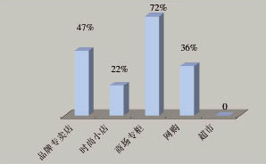 内衣消费行为特点:购买文胸、睡衣、内裤件数和单价都明显高于其他类型,因颜色、款式和上身效果而购买的人达45.7%,购买主要场所为商场专柜、时尚小店和网购,近65%的人选择和穿着内衣时追求性感迷人。购买内衣时,对品牌、款式颜色、面料及质量、上身效果、服务质量等重视程度较高,而对价格和专业指导重视程度低。经常购买年轻内衣品牌的有芬狄诗、BODY POPS、都市丽人、CK、蜜桃派等。