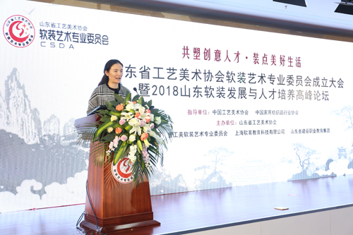 2018山东软装发展与人才培养高峰论坛召开 开启软装发展新纪元 2018年3月31日,以“共塑创意人才·装点美好生活”为主题的山东省工艺美术协会软装艺术专业委员会成立大会暨2018山东软装发展与人才培养高峰论坛在山东省济南市隆重召开,本次论坛由中国工艺美术协会、中国家用纺织品行业协会指导、山东省工艺美术协会主办,山东省工艺美术协会软装艺术专业委员会、上海软育教育科技有限公司、山东省建设职业教育集团承办,旨在通过引导管理,完善行业规范,牵引整个山东软装行业的健康发展,并助力山东省新旧动能转换重大战略的实施。 中国工艺美术协会秘书长孙烨、中国家用纺织品行业协会设计师分会副秘书长贾昊、山东省工艺美术协会会长万进、山东省纺织服装行业协会秘书长张春华、山东城市建设职业学院党委书记花景新、山东城市建设职业学院学院副院长高绍远、山东省职业技术教育学会副会长王世忠、山东省建设发展研究院副院长安强、中国工艺美术行业艺术大师王一君、艾鼎国际设计大赛组委会创始人庞敬枫、上海软育教育科技有限公司董事长孙锐等近300名领导嘉宾出席。