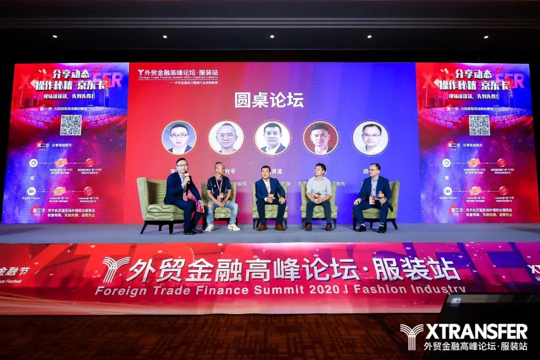 外贸金融圆桌论坛将本次会议推向高潮。XTransfer客户代表东莞市飒拉缇服饰有限公司董事长吴光平、东莞市蓝彩服装有限公司董事长蓝贤清、东莞市阿比迪电子商务有限公司董事长黄罡参与其中,与XTransfer CEO邓国标、东莞商务拓展总监李志刚共同探讨外贸服装行业的破“疫”新商机,同时对XTransfer赋予中小服装企业的价值表示高度认可。