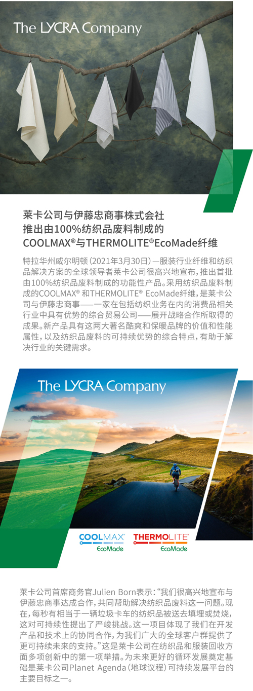 莱卡推出100%纺织品废料制成的纤维