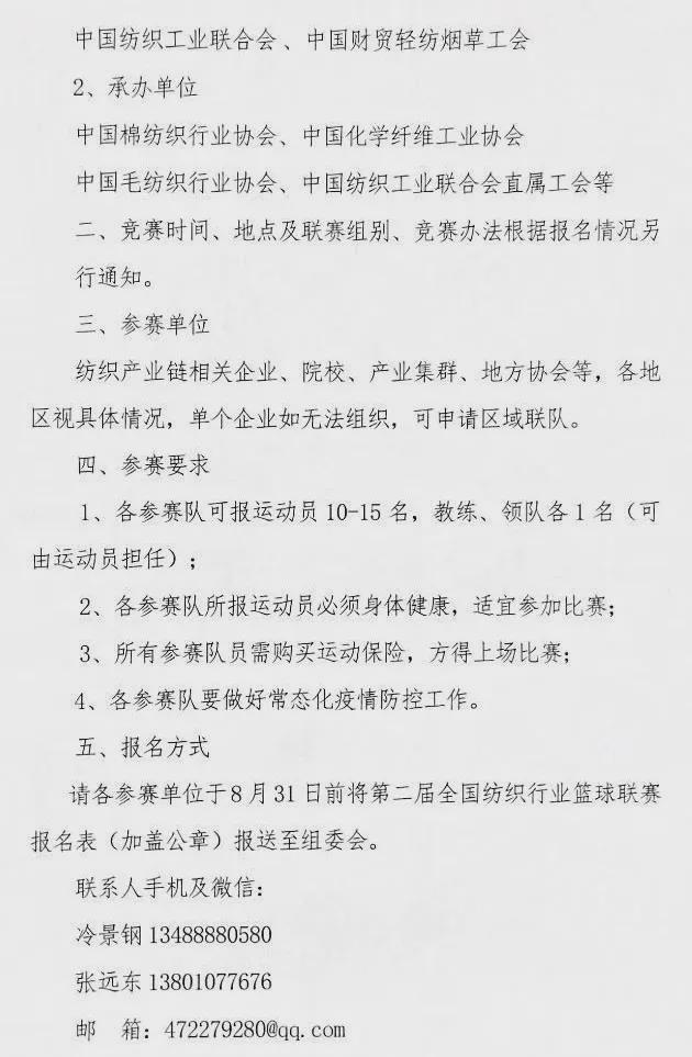 相约在秋季!第二届全国纺织行业篮球联赛报名启动